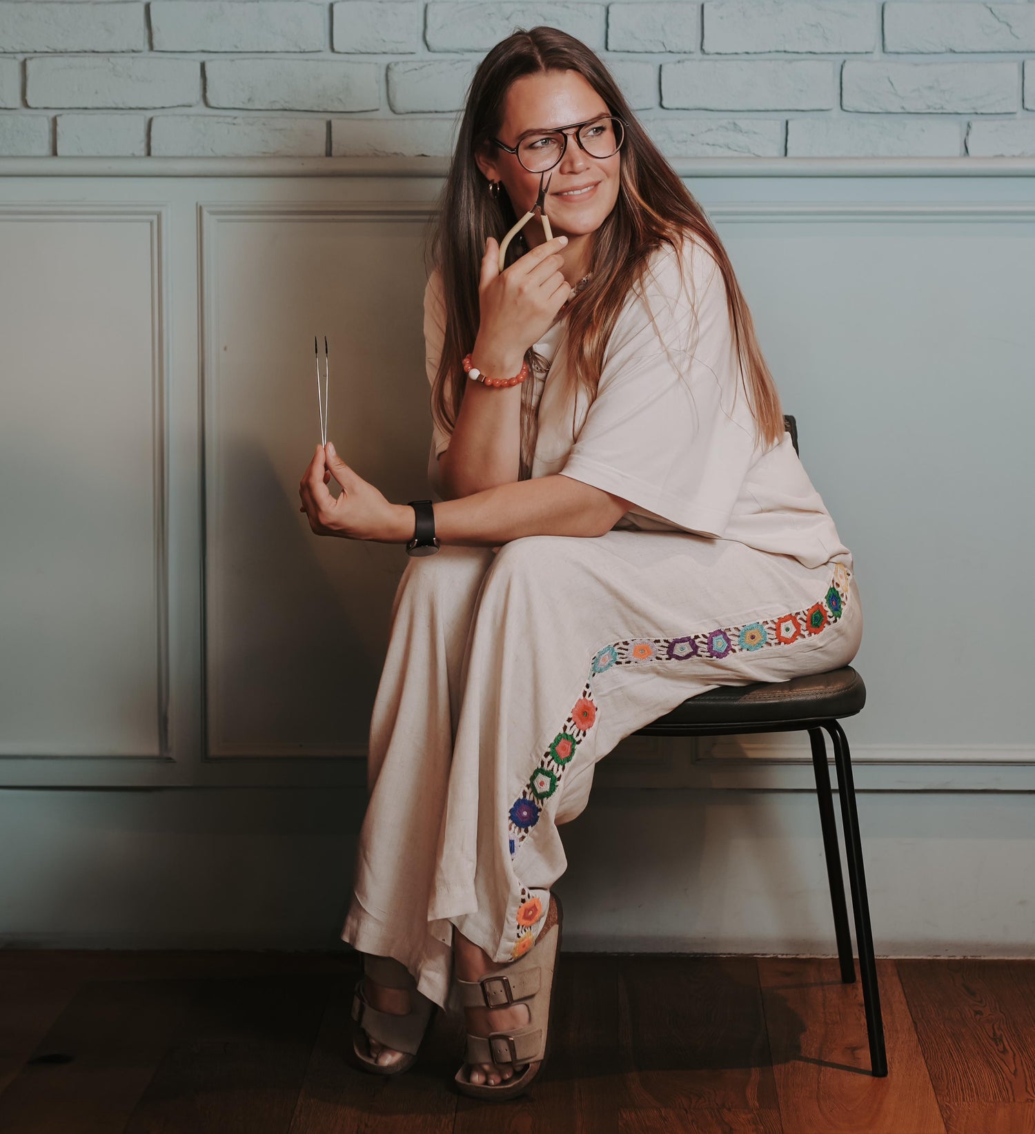 Weil es für mich meditativ ist, weil ich dabei zur Ruhe komme – und weil es ein unglaubliches Gefühl ist, am Ende ein fertiges Produkt in den Händen zu halten. Dieses Gefühl war neu für mich: absolute Zufriedenheit und auch ein bisschen Stolz. Ich habe immer mehr Schmuck gemacht – und irgendwann kam die Frage auf, wer das eigentlich alles tragen soll. Meine Antwort damals: „Keine Ahnung, aber es macht mir Spaß.“